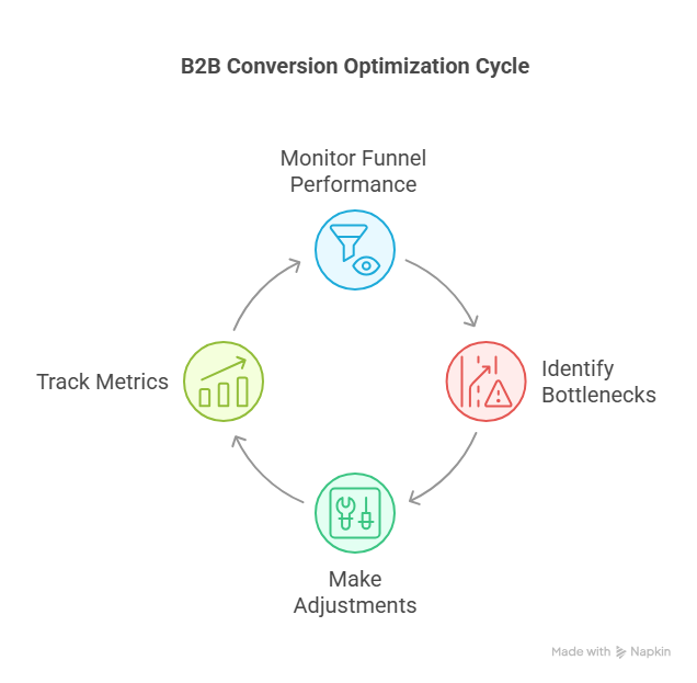 What works today might not work tomorrow. That’s why scalability demands ongoing B2B conversion optimization . You need to monitor funnel performance, identify bottlenecks, and make adjustments regularly. Treat your funnel like a living thing always growing, shifting, and improving.