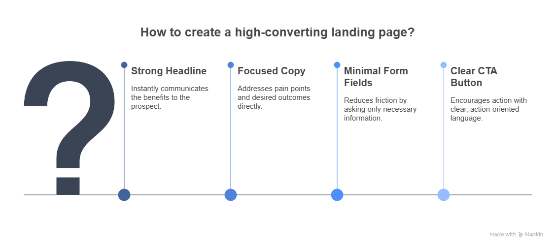At some point, you need to capture the prospect’s information and that’s where landing pages come in. But just slapping a form on a page isn’t enough. A high-converting landing page is simple, clear, and designed entirely around a single call-to-action. It must remove friction, answer questions, and make saying “yes” the easiest thing.
