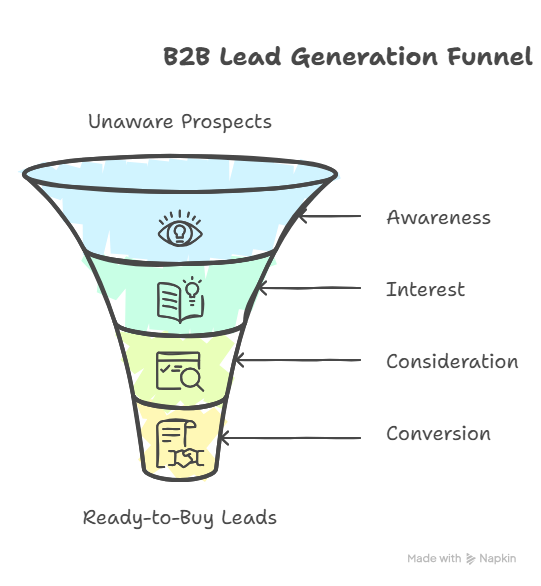 A successful B2B lead generation funnel isn’t a single webpage or an ad. It is a journey. To guide prospects from unaware to ready-to-buy, you need distinct stages mapped out clearly. Each stage must have its own goal, content type, and strategy to keep moving leads forward smoothly. Think of this as laying the tracks before running the train.