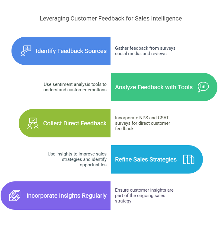 Customer feedback is a valuable source of sales intelligence data. By analyzing feedback, surveys, and reviews, businesses can uncover insights about customer satisfaction, pain points, and future needs. This data can be used to improve your product offerings, refine your messaging, and enhance customer relationships.