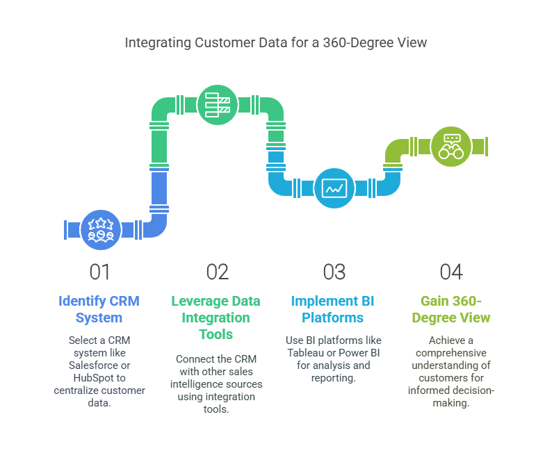 One of the key challenges in leveraging sales intelligence is siloed data. Information might exist in different systems, from CRM platforms to social media dashboards, website analytics tools, and external data providers. To make informed decisions, it’s crucial to integrate these disparate data sources into a unified platform.